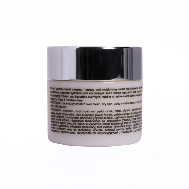 A 3-in-1 hybrid sleeping masque, wash-off hydrating masque, and luxurious moisturizing creme that detoxifies, nourishes, and infuses the skin with powerful antioxidants helping to restore a well-rested, renewed glow.