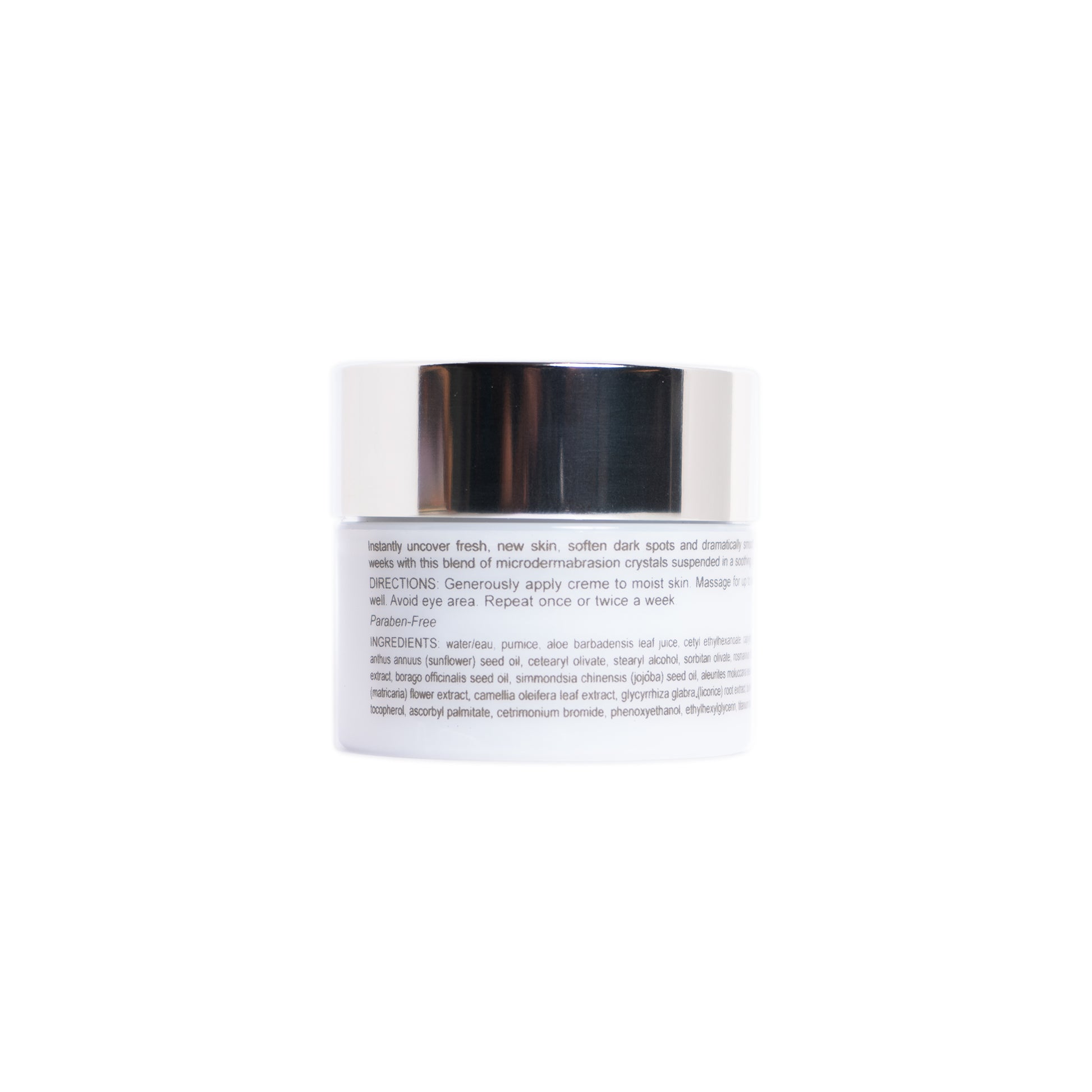 Instantly uncover fresh, new skin, reduce enlarged pores, soften dark spots, dramatically smooth fine facial lines and soften acne and other scars in weeks with this blend of Volcanic Microcrystals suspended in a soothing, conditioning creme.